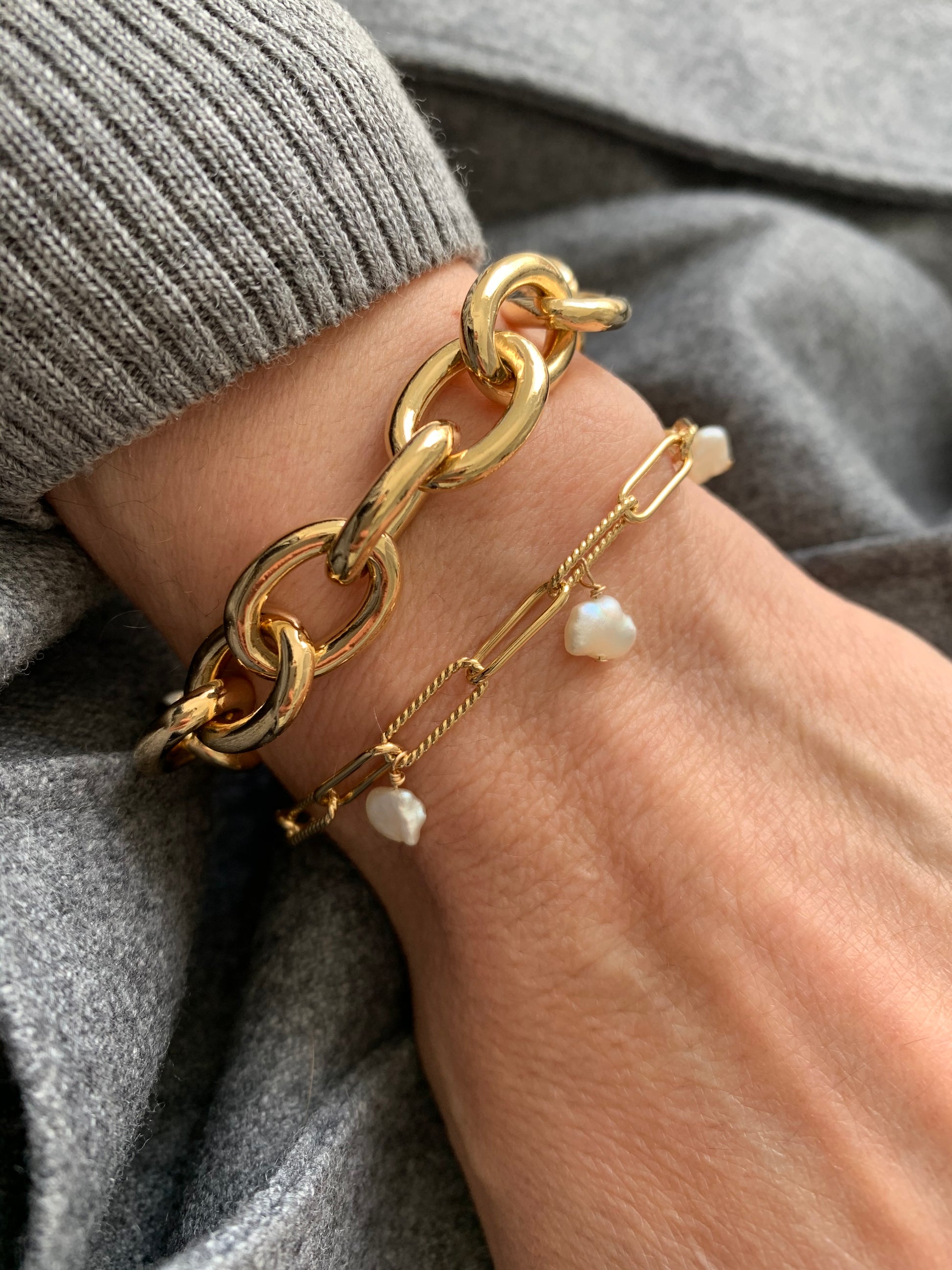 Beautiful comfortable Bracelet. Gold Inlays Links and gold plated clasp.